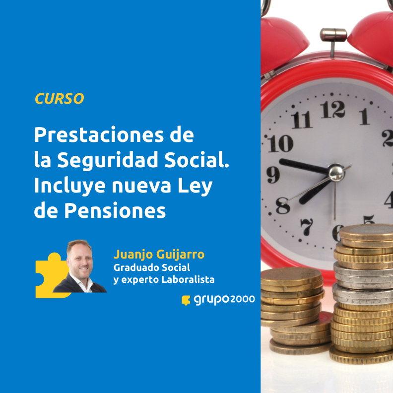 Descubre todas las novedades sobre cotización, pensiones y Seguridad Social con el Curso de Prestaciones de la Seguridad Social y la nueva Ley de Pensiones. Aprende a calcular la pensión de jubilación y conoce los cambios en el SMI. Además en este curso se incluye una Masterclass en directo el próximo jueves 26 de marzo de 2026 de 17h a 19h con nuestro experto laboralista Juanjo Guijarro. ¡Inscríbete ahora!